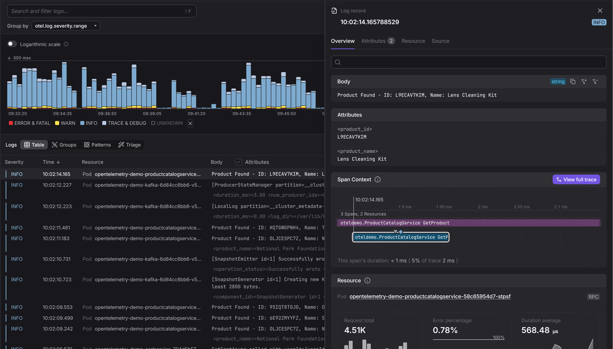 你已经完成了艰巨的工作:实现了结构化日志记录、通过OpenTelemetry确立了日志模式、为日志补充了丰富的上下文信息,还构建了以收集器为核心的稳健流水线。最后一步,是确保你的可观测性平台能充分利用这些投入。